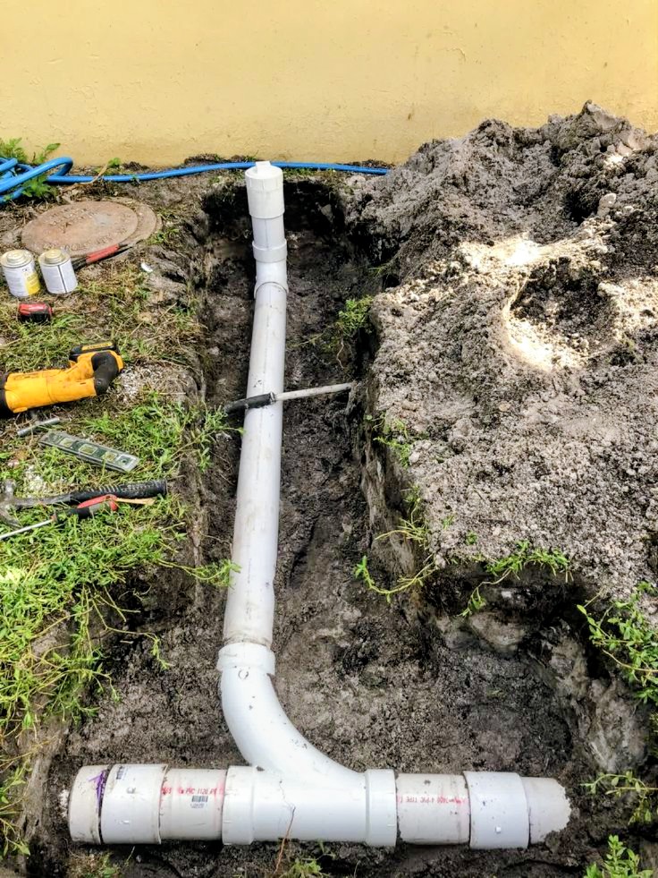 Trabajo de plomería subterránea para drenaje.